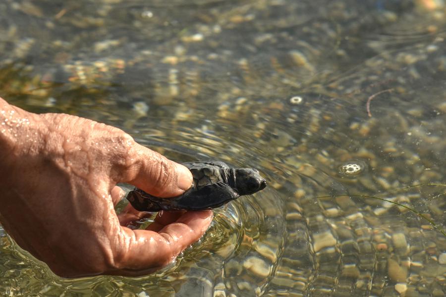 Baby hawksbill sea turtles are released to the sea on the occasion of World Environment Day in Donggala regency, Central Sulawesi, Indonesia, June 5, 2024. (Photo by Adi Pranata/Xinhua)A person releases a baby hawksbill sea turtle on the occasion of World Environment Day in Donggala regency, Central Sulawesi, Indonesia, June 5, 2024. (Photo by Adi Pranata/Xinhua)People release baby hawksbill sea turtles on the occasion of World Environment Day in Donggala regency, Central Sulawesi, Indonesia, June 5, 2024. (Photo by Adi Pranata/Xinhua) ■