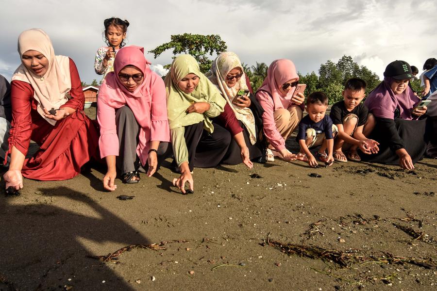 Asia Album: "Back to Nature" -- Release of Sea Turtles in Indonesia-Xinhua
