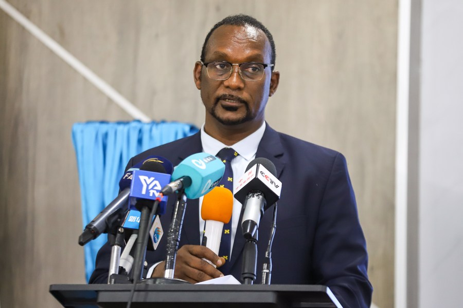 Ethiopia's State Minister of Education Kora Tushune speaks at the "Chinese Bridge" Chinese Proficiency Competition for Ethiopian college students in Addis Ababa, Ethiopia, on June 5, 2024. (Xinhua/Michael Tewelde)