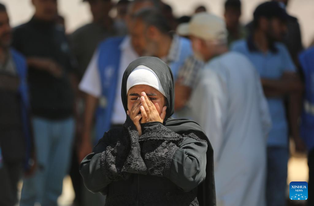 GAZA, June 6 (Xinhua) -- At least 35 Palestinians were killed and dozens of others injured in an Israeli air strike targeting a school housing displaced people in the Nuseirat camp in the central Gaza Strip, the Palestinian official news agency WAFA reported on Thursday.