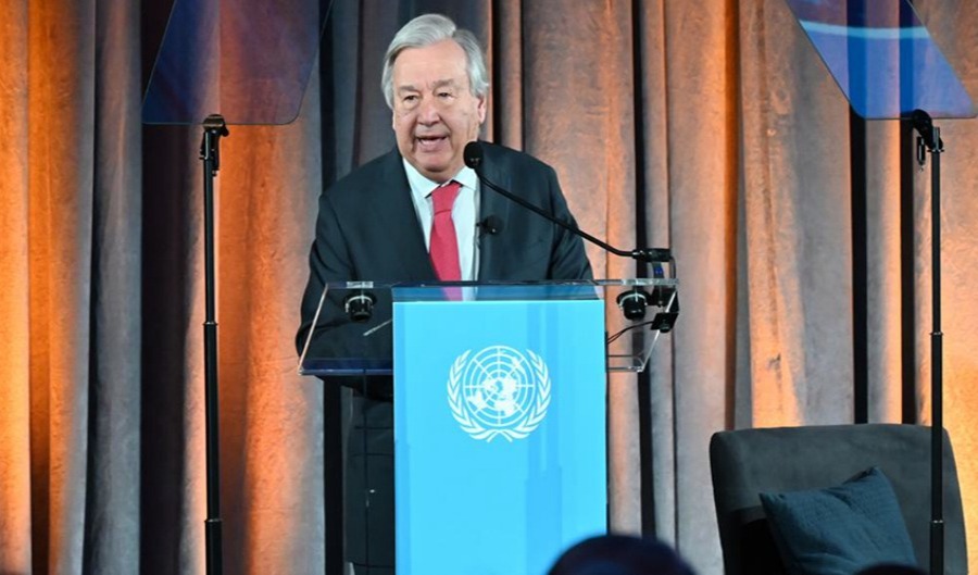 Video screenshot released by the United Nations shows UN Secretary-General Antonio Guterres delivers his special address on climate action at the American Museum of Natural History in New York, the United States, June 5, 2024. (Photo credit: UN News)