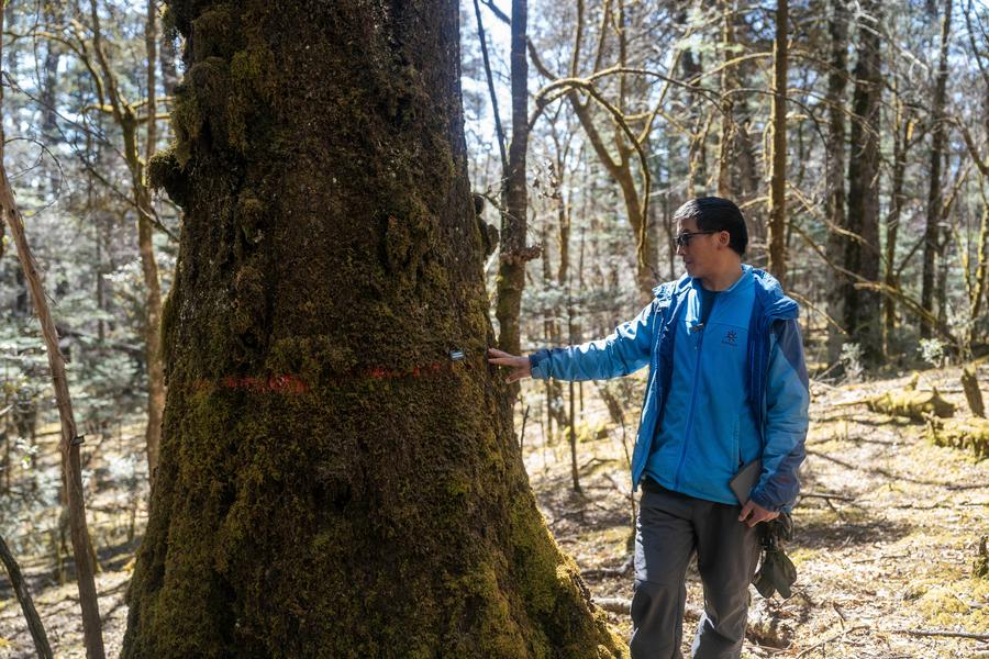 KUNMING, June 7 (Xinhua) -- Engineer Fan Zhongyu is well acquainted with the status of over 47,000 trees in a primeval forest beneath the Jade Dragon Snow Mountain in southwest China's Yunnan Province, as if they were extensions of his own abode.