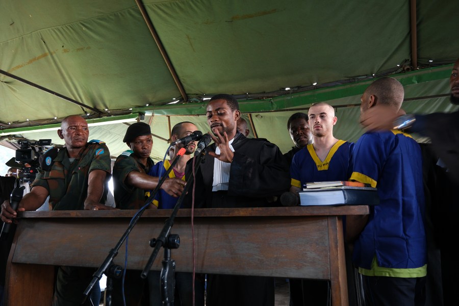 KINSHASA, June 8 (Xinhua) -- Some 50 men, including three American citizens, who were accused of being involved in last month's coup attempt in the Democratic Republic of the Congo (DRC), on Friday stood trial before a military court in Kinshasa, the capital of DRC.