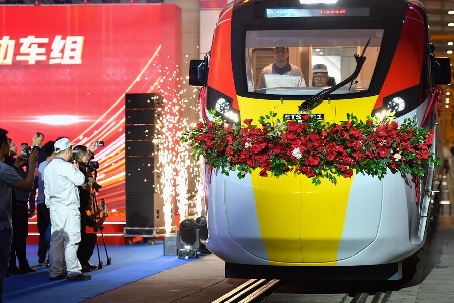 EconomyInFocus | New ETS3 meter-gauge EMU train for Malaysia rolls off the production line in C China's Hunan-Xinhua
