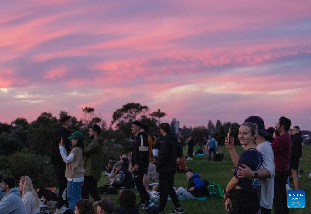 People enjoy sunset at Dudley Page Reserve in Sydney, Australia, June 9, 2024. (Xinhua/Ma Ping)