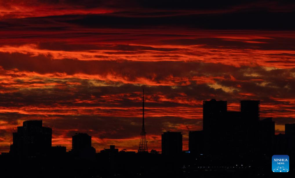 This photo taken on June 9, 2024 shows sunset view of CBD area in Sydney, Australia. (Xinhua/Ma Ping)