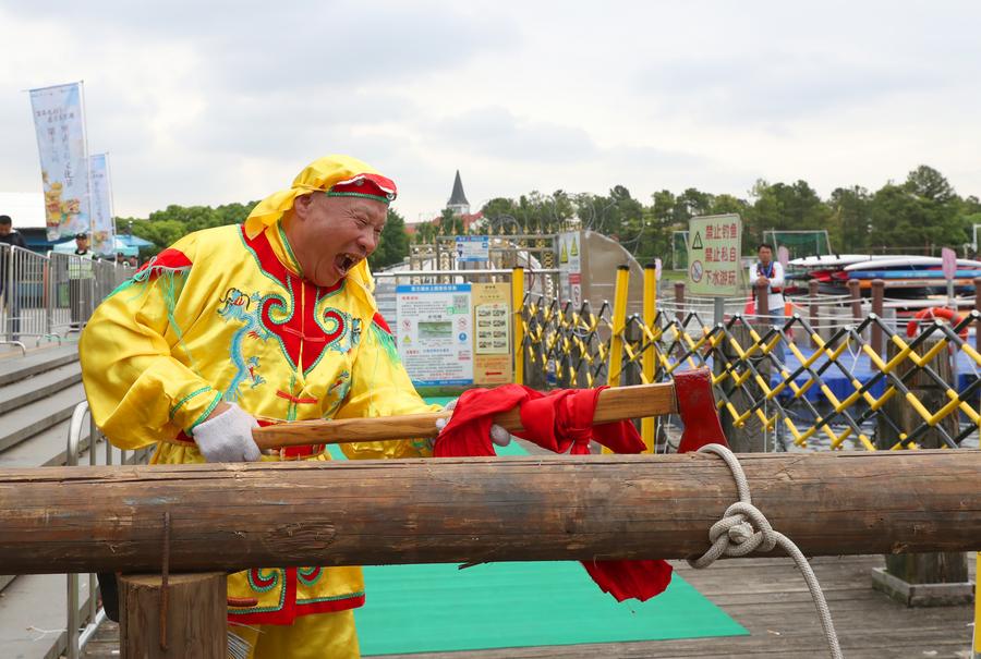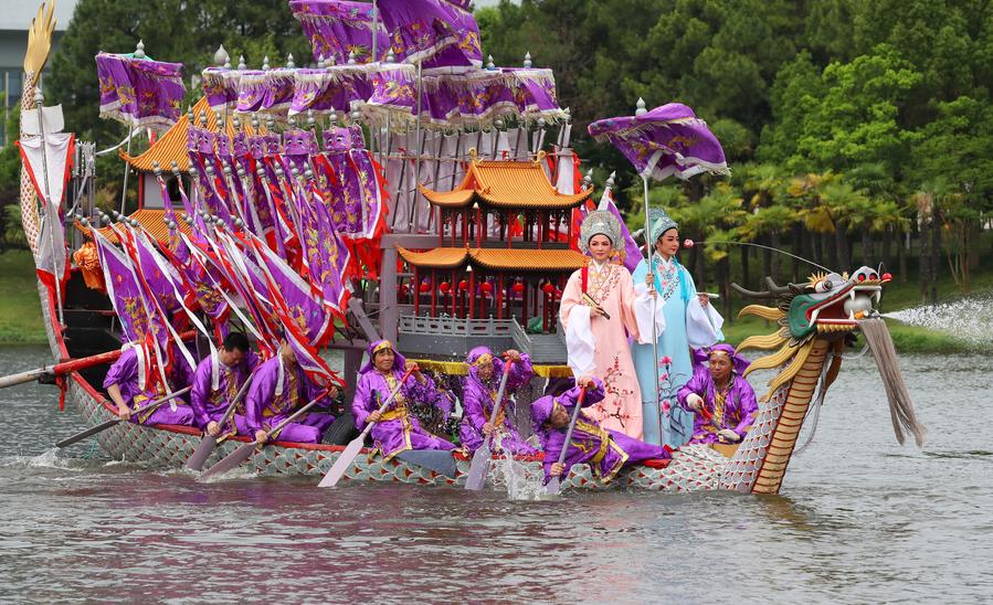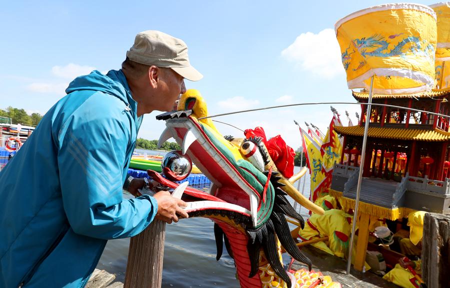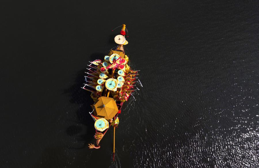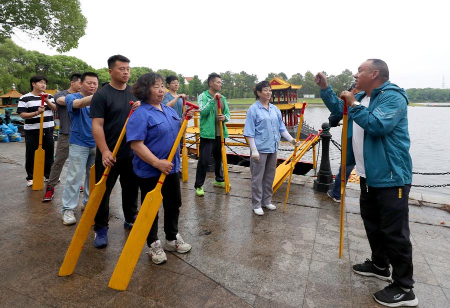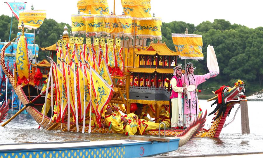 SHANGHAI, June 10 (Xinhua) -- Originated in the Ming Dynasty (1368-1644), the dragon boating customs in Luodian, located in east China's Shanghai Baoshan District, has kept prosperous with long-lasting vitality. Nowadays, the dragon boating customs in Luodian has become an iconic folk custom activity during Dragon Boat Festival in Shanghai. It was listed as a national intangible cultural heritage in 2008.