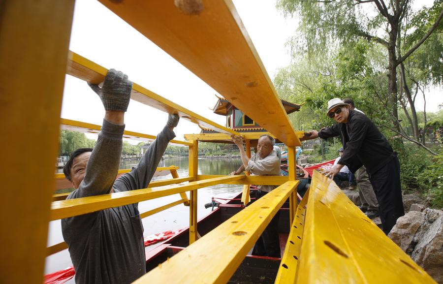 Zhang Guozhong carves a dragon boat model at a studio in Luodian Township, Baoshan District of east China's Shanghai, June 4, 2024. (Xinhua/Fang Zhe)Zhang Guomin (C) and his teammates assemble a dragon boat in Luodian Township, Baoshan District of east China's Shanghai, June 5, 2024. (Xinhua/Fang Zhe)Zhang Guozhong (1st R) explains rowing skills to rowers in Luodian Township, Baoshan District of east China's Shanghai, June 5, 2024. (Xinhua/Fang Zhe)Zhang Guozhong (1st R) and Zhang Guomin (2nd L) discuss the boats position during a rehearsal in Luodian Township, Baoshan District of east China's Shanghai, June 6, 2024. (Xinhua/Fang Zhe)Zhang Guozhong assists his teammates to sail the dragon boat out of the dock during a rehearsal in Luodian Township, Baoshan District of east China's Shanghai, June 6, 2024. (Xinhua/Fang Zhe)An aerial drone photo taken on June 6, 2024 shows a Luodian dragon boat sailing on the water of Meilan Lake in Baoshan District, east China's Shanghai. (Xinhua/Fang Zhe)This file photo taken on April 24, 2017 shows Zhang Fucheng making a wooden dragon boat model in east China's Shanghai. (Xinhua/Fang Zhe)This file photo taken on May 25, 2017 shows Zhang Guomin (C) installing brackets in east China's Shanghai. (Xinhua/Fang Zhe)This file photo taken on May 25, 2017 shows Zhang Fucheng (R) guiding the installation of a dragon boat in east China's Shanghai. (Xinhua/Fang Zhe)Zhang Guomin attends a ceremony before the departure of dragon boats during the Baoshan Luodian dragon boat festival in east China's Shanghai, June 7, 2024. (Xinhua/Fang Zhe)This photo taken on June 7, 2024 shows a scene of the dragon boat performance during the Baoshan Luodian dragon boat festival in east China's Shanghai. (Xinhua/Fang Zhe)■