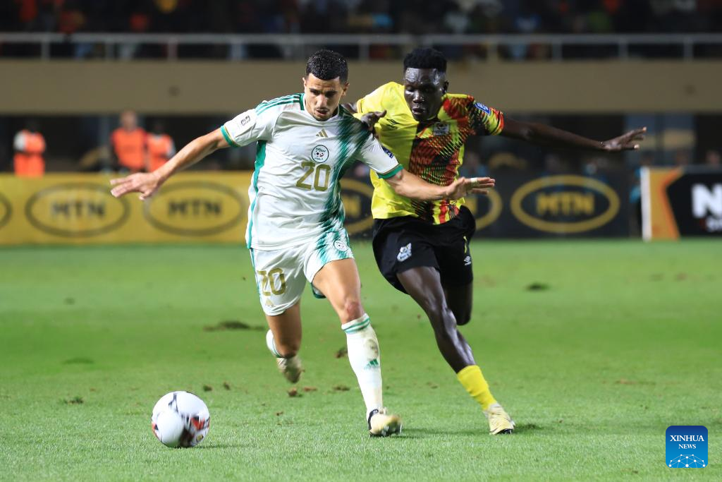 Rogers Mato (R) of Uganda vies with Youcef Attal of Algeria during the Group G match of the FIFA World Cup 2026 qualifiers between Uganda and Algeria in Kampala, the capital of Uganda, June 10, 2024. (Photo by Hajarah Nalwadda/Xinhua)