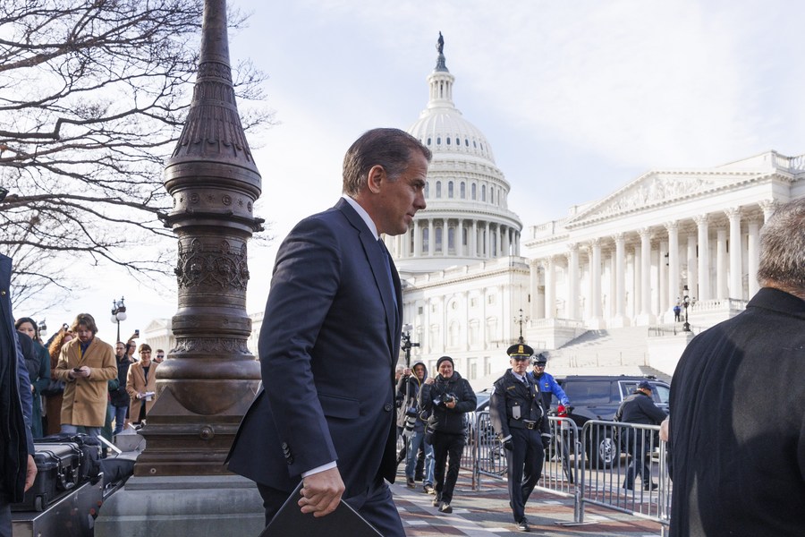 Hunter Biden, son of U.S. President Joe Biden, is seen after a news conference outside the Capitol in Washington, D.C., the United States, Dec. 13, 2023. (Photo by Aaron Schwartz/Xinhua)