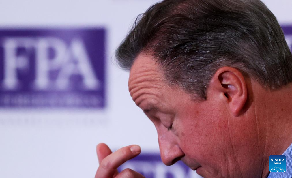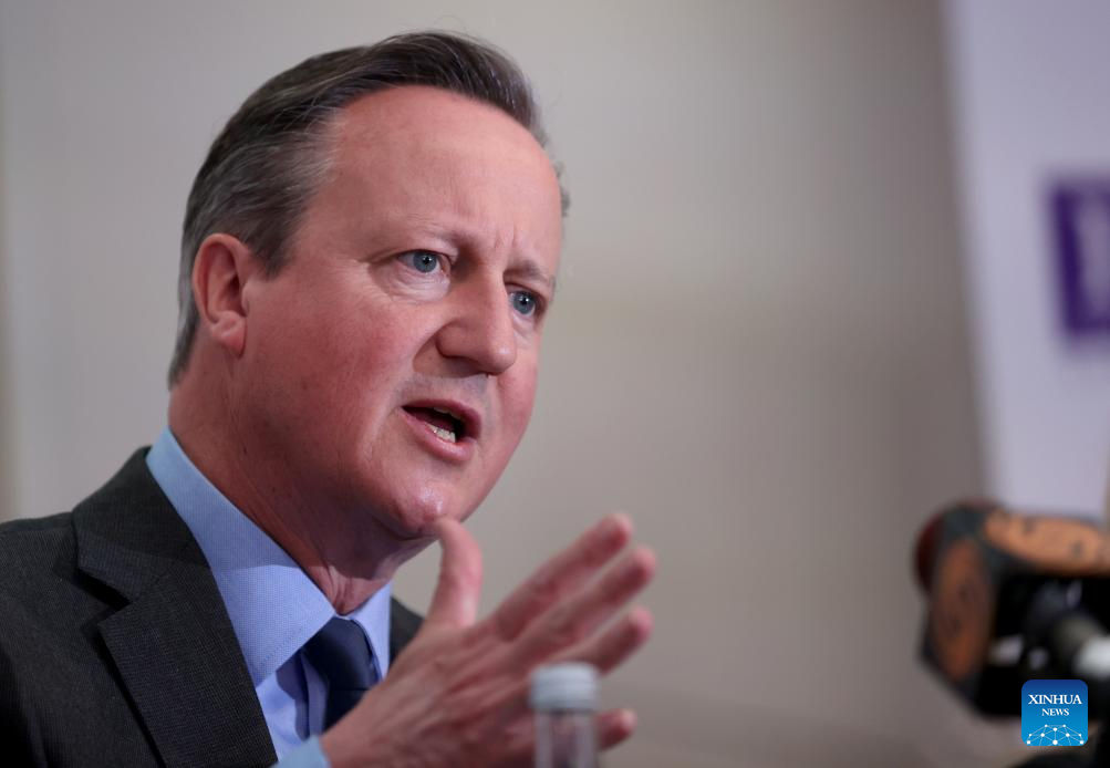 British Foreign Secretary David Cameron attends a press briefing at the Foreign Press Association in central London, Britain, on June 13, 2024. The United Kingdom will hold its general election on July 4. (Xinhua/Li Ying)