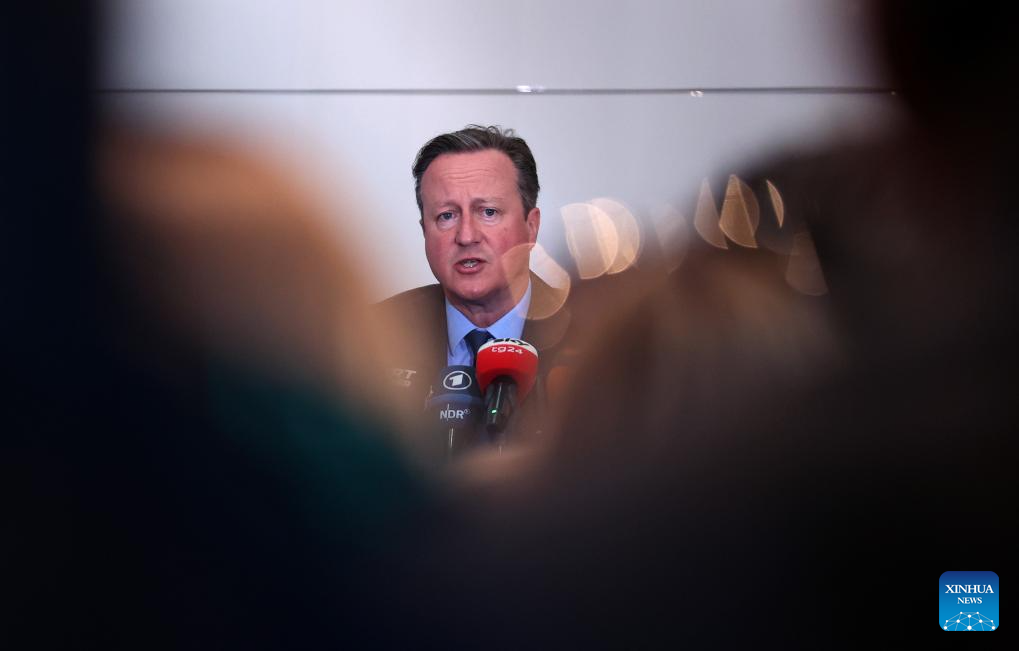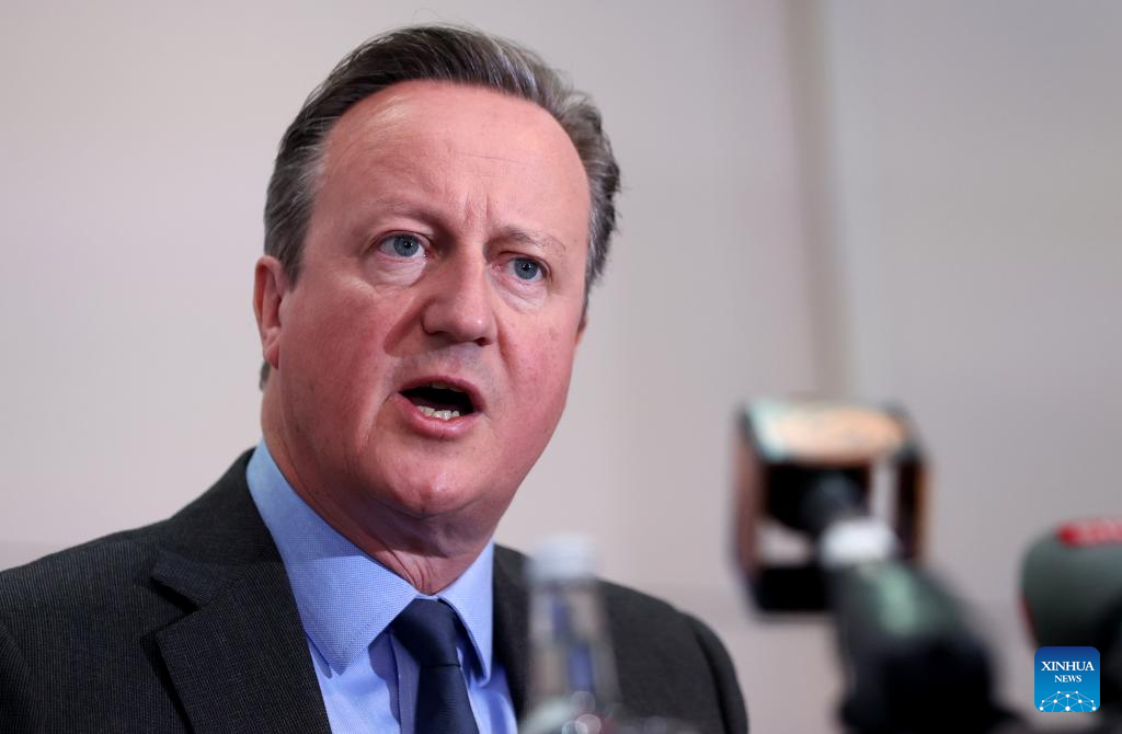 British Foreign Secretary David Cameron answers questions during a press briefing at the Foreign Press Association in central London, Britain, on June 13, 2024. The United Kingdom will hold its general election on July 4. (Xinhua/Li Ying)