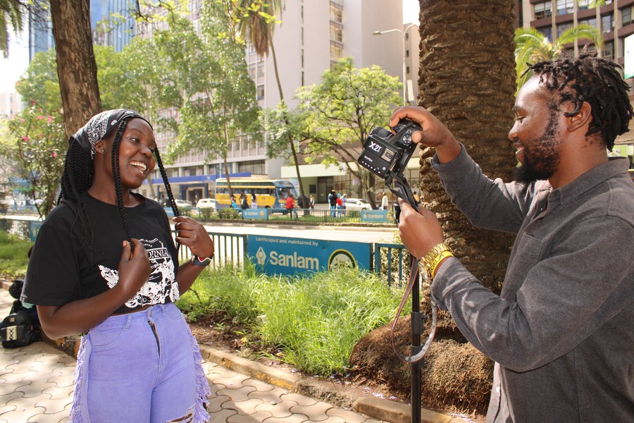 A photographer takes a photo of a client in Nairobi, capital of Kenya, on Nov. 12, 2023. (Photo by Chrispinus Omar/Xinhua)