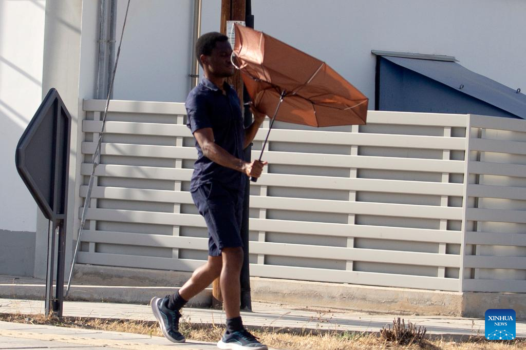 People work during a heatwave in Nicosia, Cyprus, on June 14, 2024. An elderly woman has died and several other people have been hospitalized with heatstroke symptoms as temperatures in Cyprus soared on Friday to an all-time June high of 45 degrees Celsius, the country's health authorities announced. (Photo by George Christophorou/Xinhua)