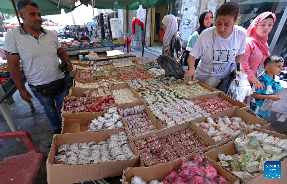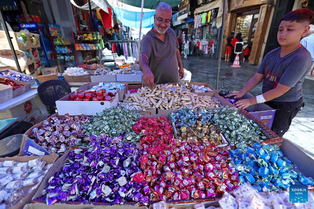 People buy sweets ahead of Eid al-Adha in Sidon, Lebanon, June 14, 2024. (Xinhua/Bilal Jawich)