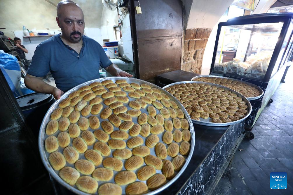 A sweets seller prepares for Eid al-Adha in Sidon, Lebanon, June 14, 2024. (Xinhua/Bilal Jawich)