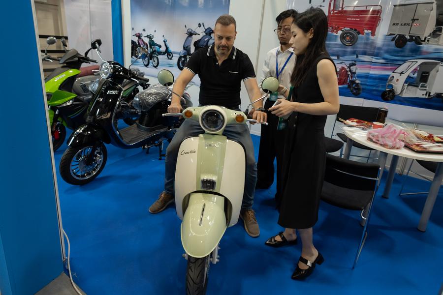 Erno Peto, president of Hungarian-Chinese Chamber of Economy, highlighted the presence of EU-certified intelligent electric vehicle (EV) chargers and smaller electronic cars at the fair.