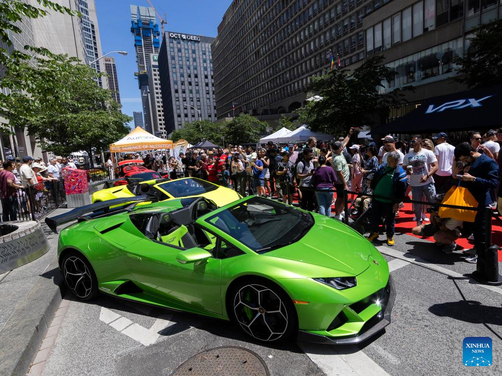 People visit the 2024 Yorkville Exotic Car Show in Toronto, Canada, June 16, 2023.