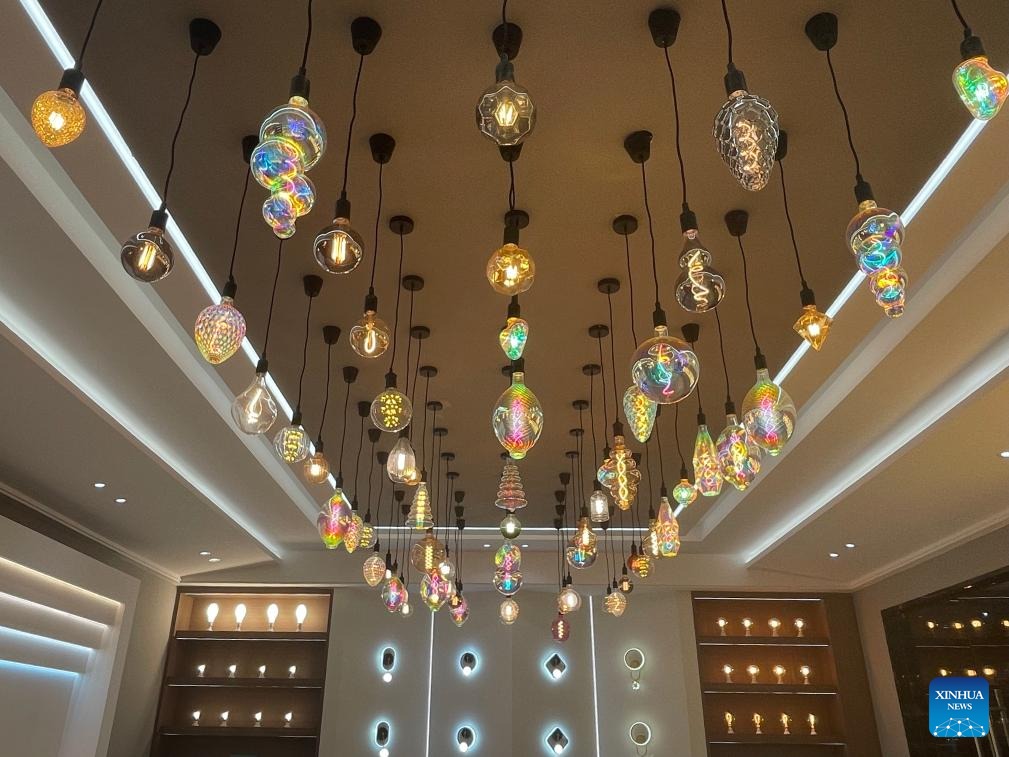 This photo taken on June 12, 2024 shows light-bulb products produced by Signify N.V., a Dutch lighting multinational, exhibited in a lighting production base of the company in Ruichang City, east China's Jiangxi Province. (Xinhua/Zhu Yunuo)