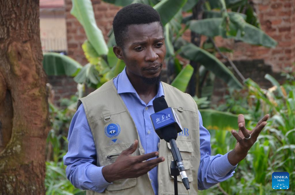 Joyeux Mugisho, the head of People for Peace and Defense of Rights (PPRD), a refugee-led non-governmental organization, speaks during an interview with Xinhua in Kampala, Uganda, June 11, 2024. (Photo by Nicholas Kajoba/Xinhua)