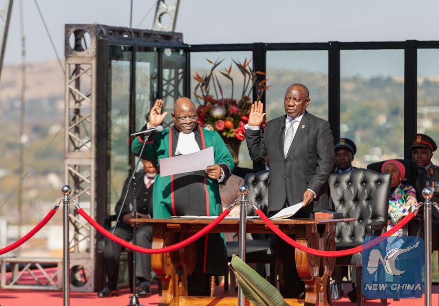 JOHANNESBURG, June 20 (Xinhua) -- Cyril Ramaphosa, leader of South Africa's ruling African National Congress (ANC), took the oath of office as the nation's president for the next five years Wednesday at a ceremony in Pretoria, the administrative capital.