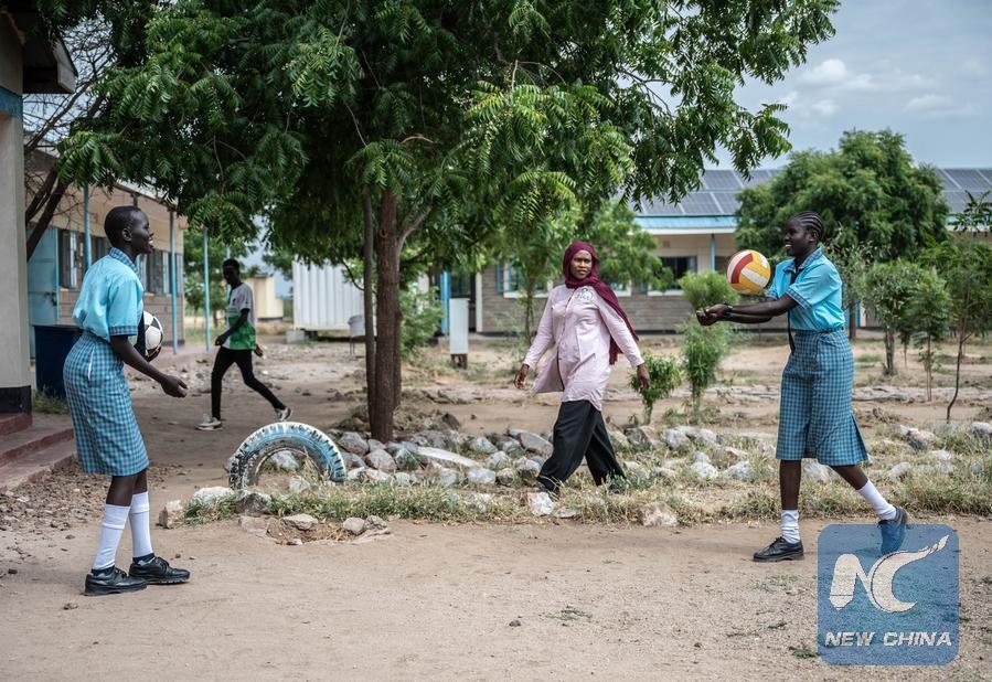 Students play volleyball at Lifeworks Tumaini Girls Secondary School at Kakuma refugee camp in Turkana, Kenya, June 18, 2024. (Xinhua/Wang Guansen)