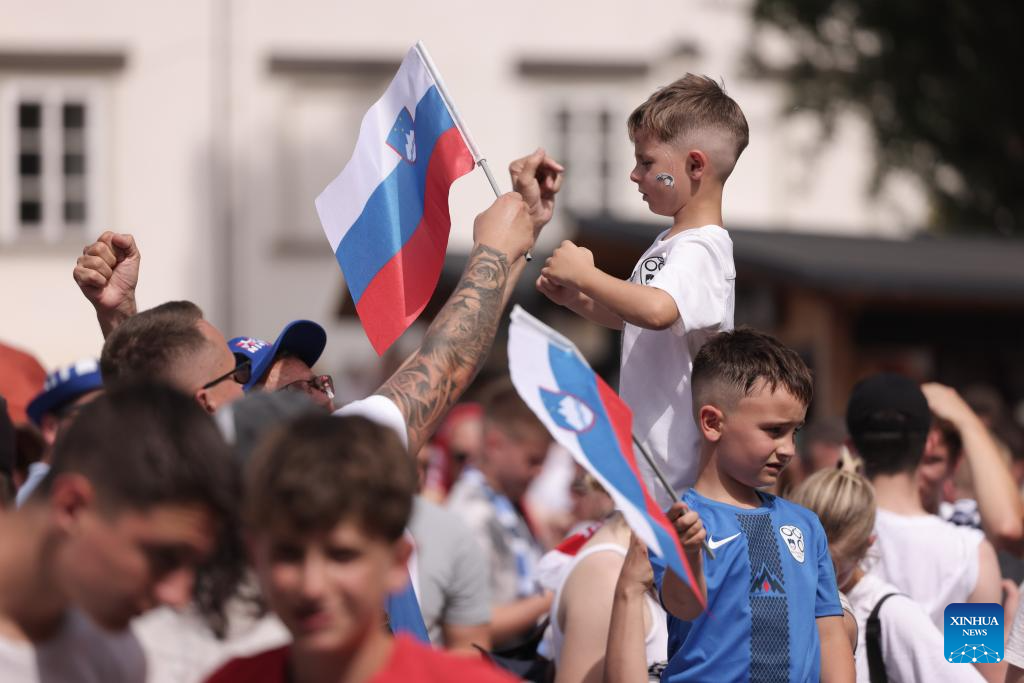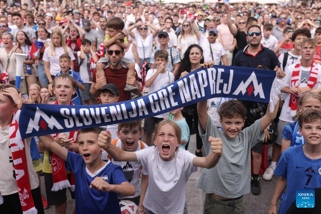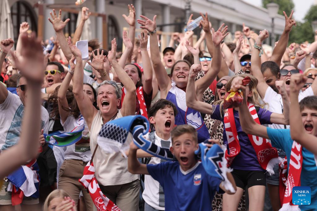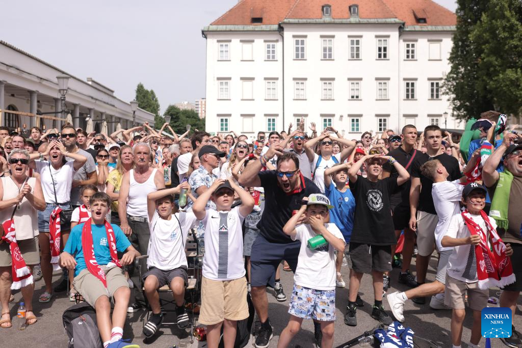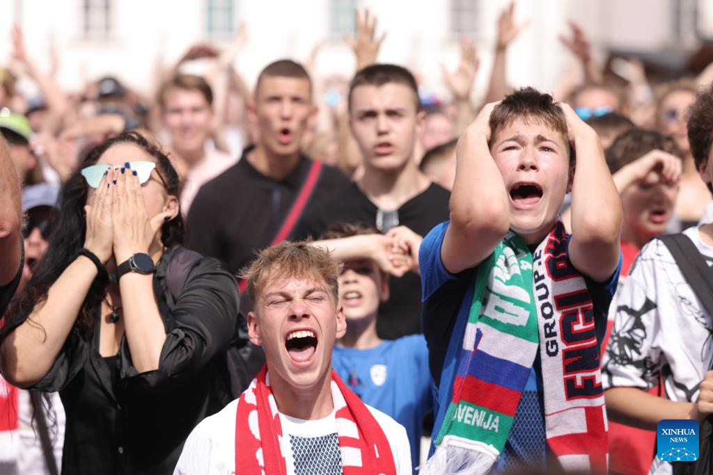 People react while watching the UEFA Euro 2024 Group C match between Slovenia and Serbia in Ljubljana, Slovenia, June 20, 2024. (Photo by Zeljko Stevanic/Xinhua)