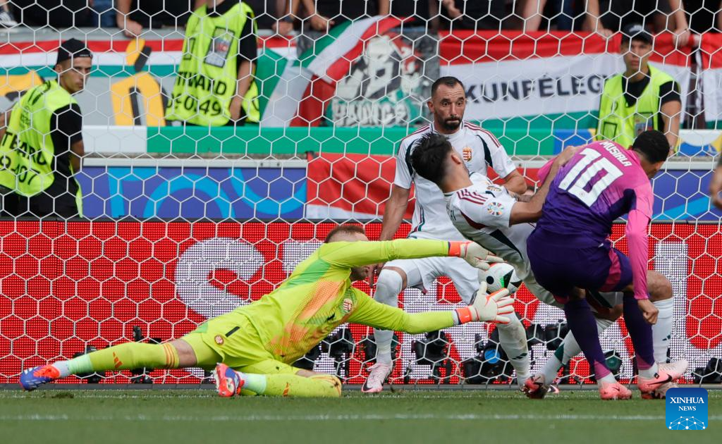 Jamal Musiala (1st R) of Germany scores a goal during the UEFA Euro 2024 Group A match between Germany and Hungary in Stuttgart, Germany on June 19, 2024. (Photo by Philippe Ruiz/Xinhua)
