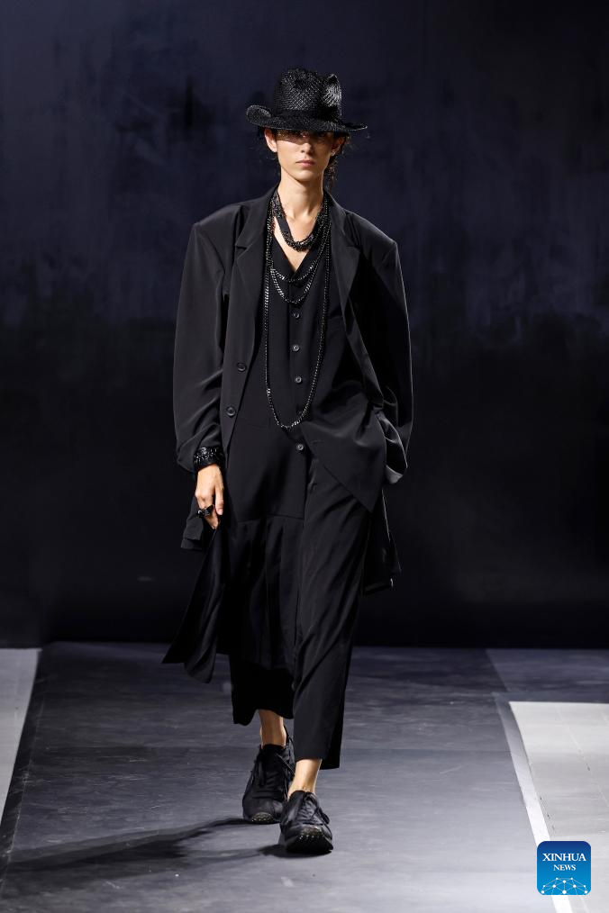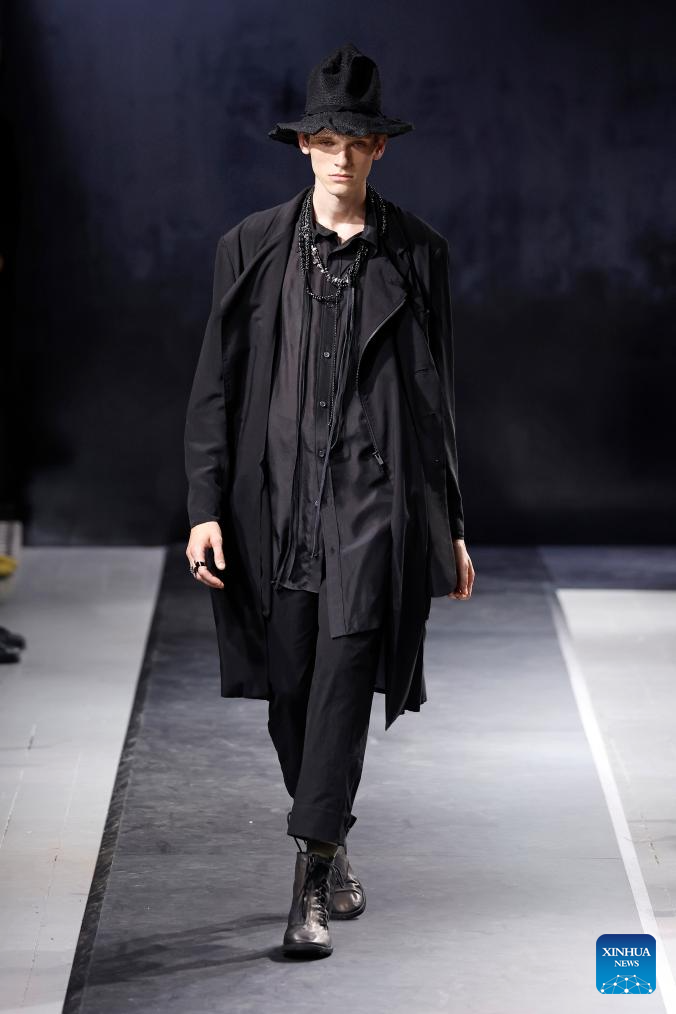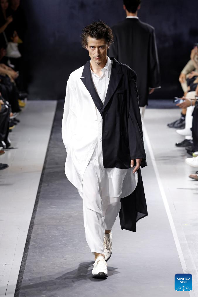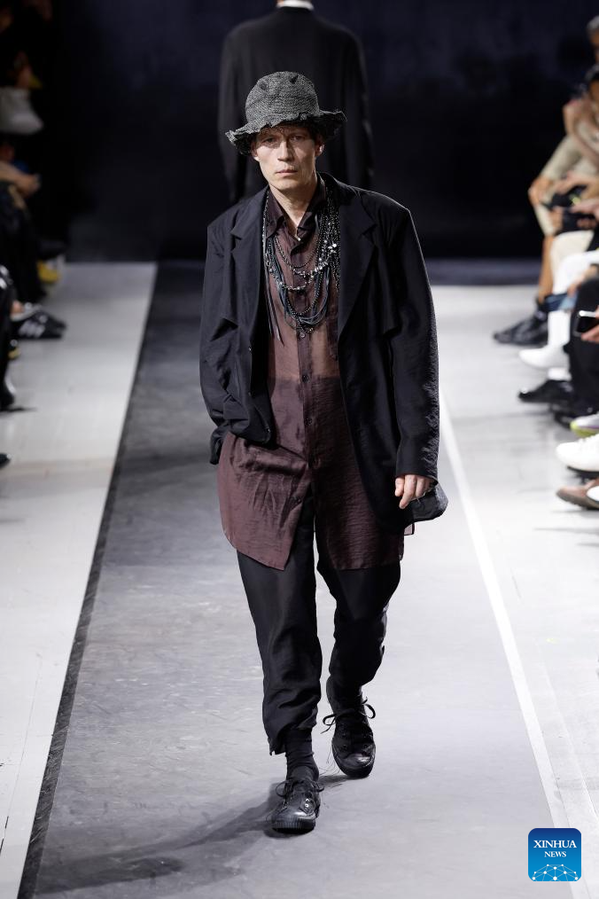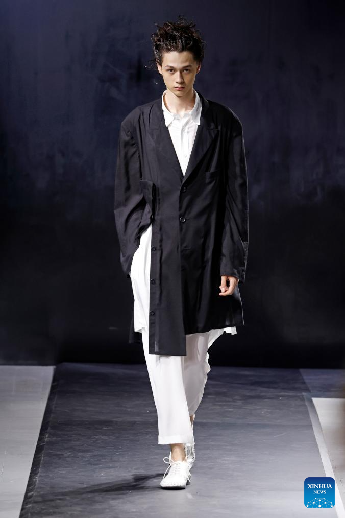 A model presents a creation from the Menswear Spring/Summer 2025 collections by Yohji Yamamoto during the Paris Fashion Week in Paris, France, on June 20, 2024. (MeetEurope/Handout via Xinhua)