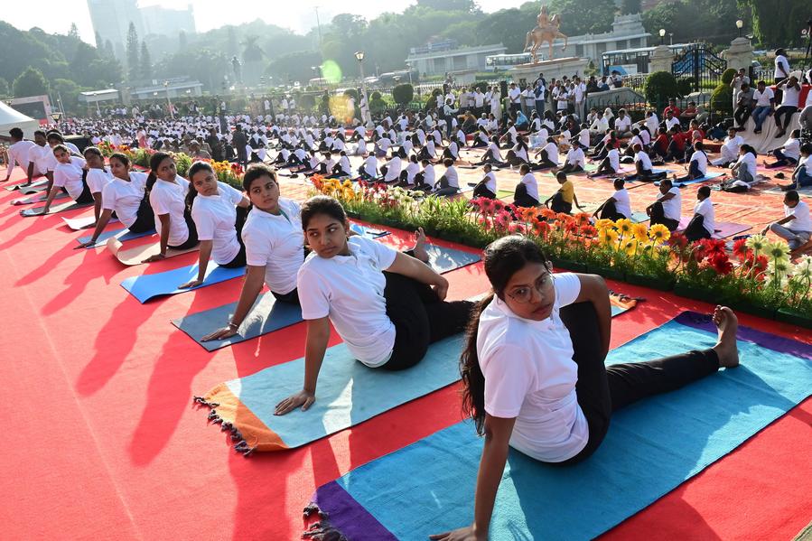 Participants take part in a yoga session to celebrate International Day of Yoga in Kathmandu, Nepal, June 21, 2024. (Photo by Hari Maharjan/Xinhua)Yoga enthusiasts perform yoga on the occasion of the International Day of Yoga in Bengaluru, India, June 21, 2024. (Str/Xinhua)Yoga enthusiasts perform yoga on the occasion of the International Day of Yoga in Bengaluru, India, June 21, 2024. (Str/Xinhua)Participants take part in a yoga session to celebrate International Day of Yoga in Jakarta, Indonesia, June 21, 2024. (Xinhua/Zulkarnain)Participants take part in a yoga session to celebrate International Day of Yoga in Jakarta, Indonesia, June 21, 2024. (Xinhua/Zulkarnain) ■