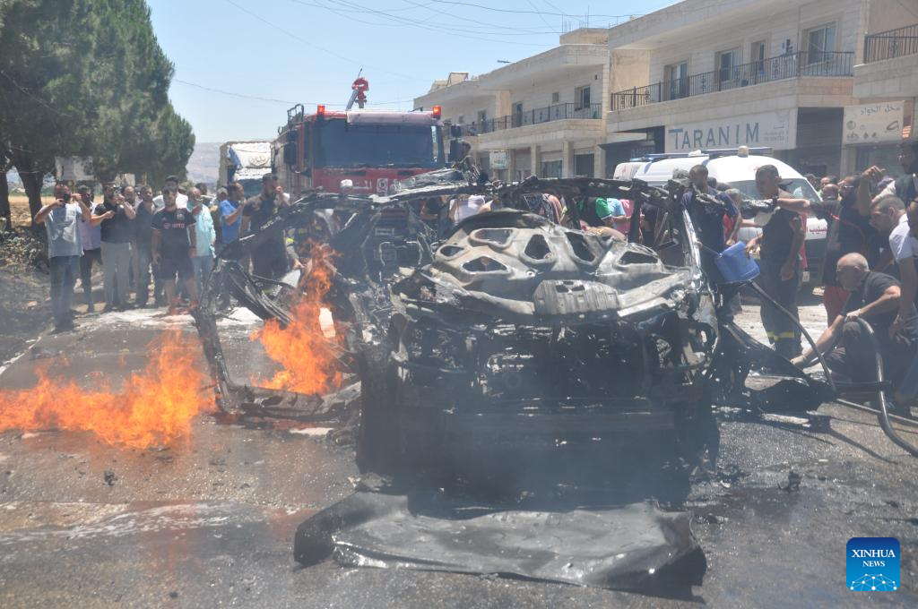 BEIRUT, June 22 (Xinhua) -- A leader from the Islamic Group was killed on Saturday in an Israeli airstrike targeting a vehicle in the village of Al-Khyara, located in the Western Bekaa District of eastern Lebanon, a Lebanese military source told Xinhua.