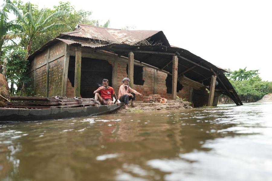 This photo taken on June 22, 2024 shows a house damaged by the floods in Sylhet region, Bangladesh. (Xinhua)