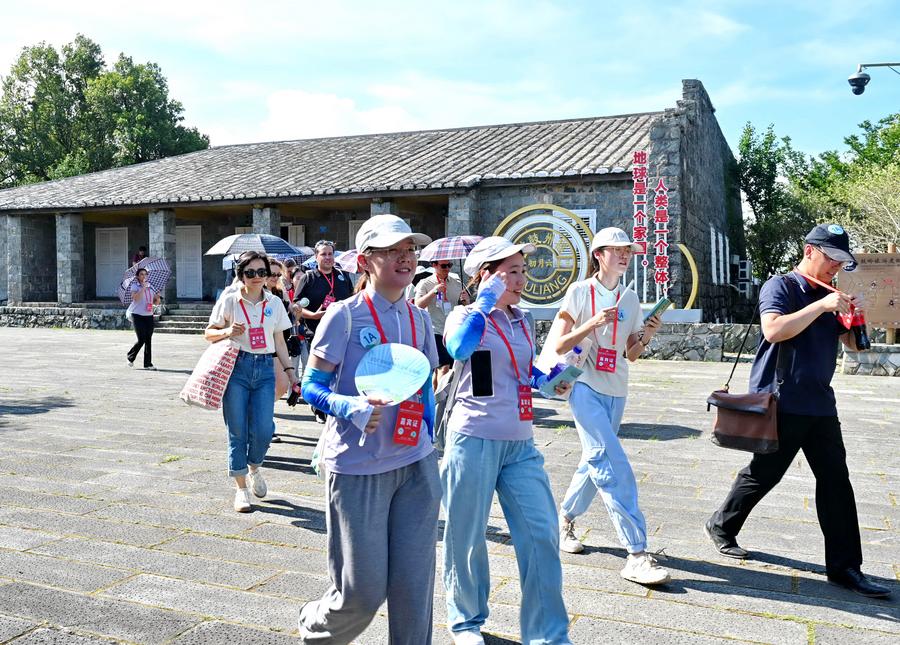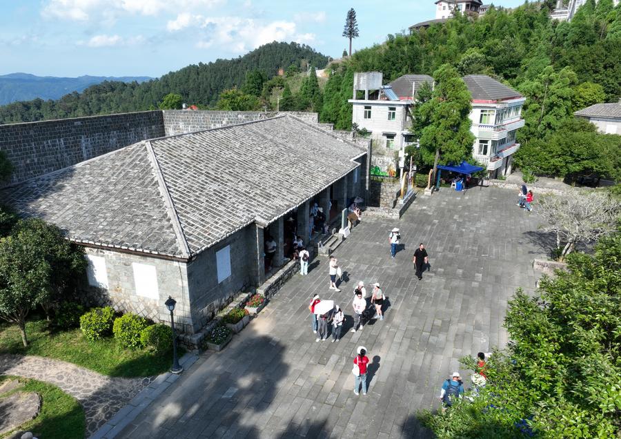 An aerial drone photo taken on June 24, 2024 shows Chinese and American youth visiting the Public Service Community of Nations in Kuliang, Fuzhou, southeast China's Fujian Province. (Xinhua/Lin Shanchuan)