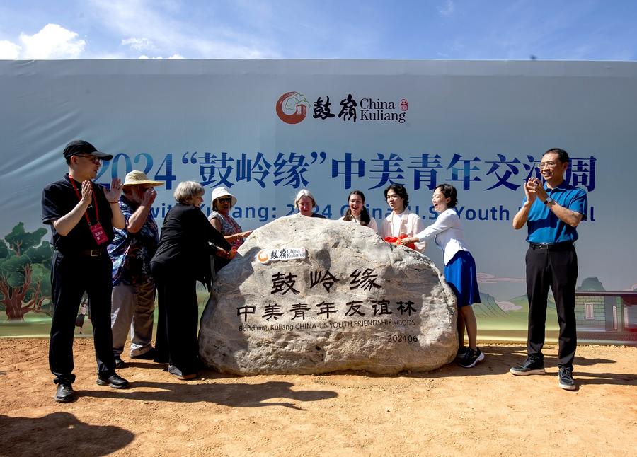 American student Isaac Gray from Yenching Academy of Peking University writes wishes for the tree of friendship he has planted in Kuliang, Fuzhou, southeast China's Fujian Province, June 24, 2024. (Xinhua/Lin Shanchuan)This photo taken on June 24, 2024 shows the opening ceremony of "Bond with Kuliang: 2024 China-U.S. Youth Festival" in Fuzhou, southeast China's Fujian Province. (Xinhua/Qin Lang)Chinese and foreign participants of "Bond with Kuliang: 2024 China-U.S. Youth Festival" plant trees of friendship in Kuliang, Fuzhou, southeast China's Fujian Province, June 24, 2024. (Xinhua/Qin Lang)A drone photo taken on June 24, 2024 shows Chinese and foreign participants of "Bond with Kuliang: 2024 China-U.S. Youth Festival" planting trees of friendship in Kuliang, Fuzhou, southeast China's Fujian Province. (Xinhua/Wei Peiquan)Chinese and foreign participants of "Bond with Kuliang: 2024 China-U.S. Youth Festival" unveil the monument of China-U.S. youth friendship woods in Kuliang, Fuzhou, southeast China's Fujian Province, June 24, 2024. (Xinhua/Wei Peiquan)This photo taken on June 24, 2024 shows the opening ceremony of "Bond with Kuliang: 2024 China-U.S. Youth Festival" in Fuzhou, southeast China's Fujian Province. (Xinhua/Qin Lang)Chinese and American youth visit the Public Service Community of Nations in Kuliang, Fuzhou, southeast China's Fujian Province, June 24, 2024. (Xinhua/Lin Shanchuan)■