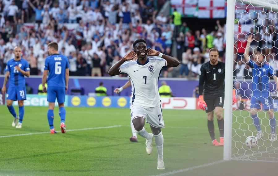 BERLIN, June 25 (Xinhua) -- England claimed top spot in Group C despite being held to a goalless stalemate by stubborn Slovenia while Denmark finished in second after sharing the spoils with eliminated Serbia in the last round of group play on Tuesday.