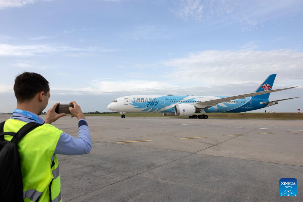 BUDAPEST, June 27 (Xinhua) -- The first scheduled passenger flight between Chinese city Guangzhou and the Hungarian capital Budapest, operated by China Southern Airlines, landed at Ferenc Liszt International Airport on Thursday.