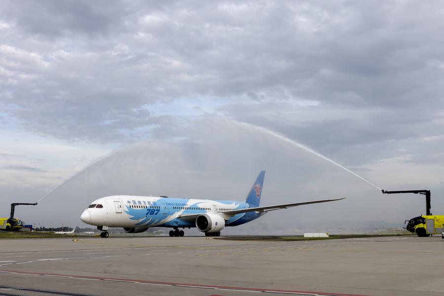 BUDAPEST, June 27 (Xinhua) -- The first scheduled passenger flight between Chinese city Guangzhou and the Hungarian capital Budapest, operated by China Southern Airlines, landed at Ferenc Liszt International Airport on Thursday.