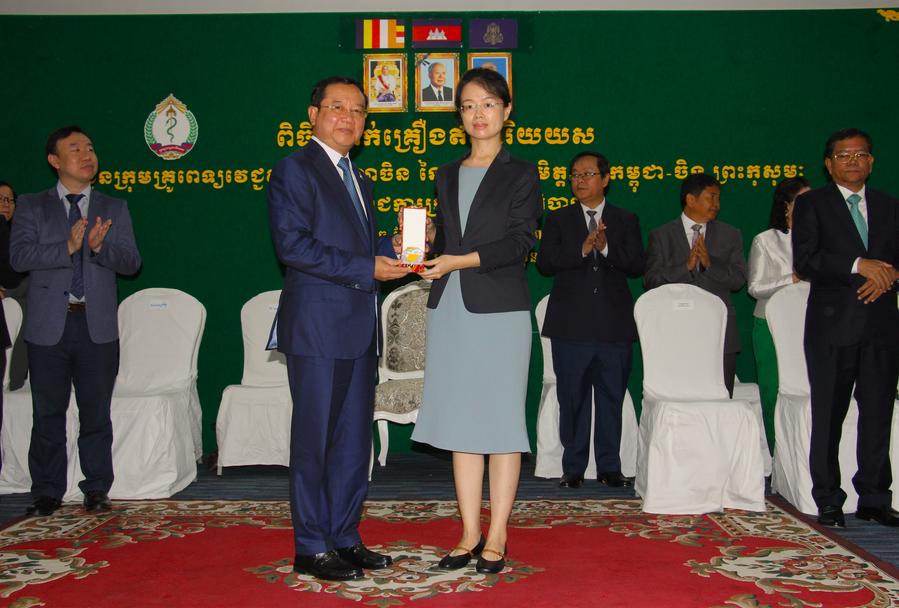 PHNOM PENH, June 28 (Xinhua) -- Cambodia on Thursday awarded the government's honorable medal decorations to the second batch of traditional Chinese medicine (TCM) medical aid team after they had successfully completed their one-year mission in helping the country fight the COVID-19 and other diseases.