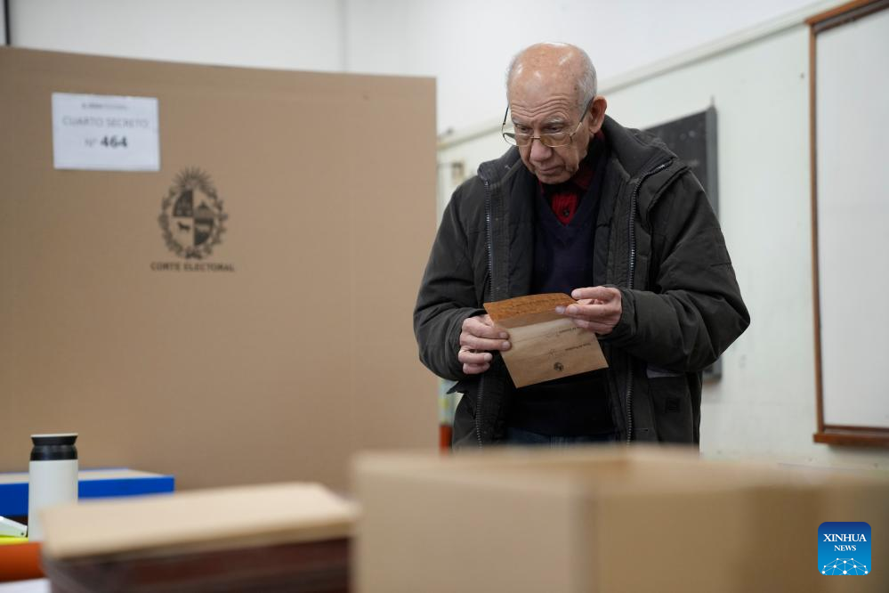 A man casts his vote at a polling station in Montevideo, Uruguay, June 30, 2024. Uruguay held primary elections on Sunday to nominate the presidential hopeful for every political party in the general elections scheduled for Oct. 27. (Photo by Nicolas Celaya/Xinhua)
