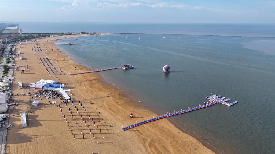 TIANJIN, July 1 (Xinhua) -- Over the years, the city of Tianjin in north China has made significant strides in the ecological restoration and development of the Bohai Sea. Several seaside parks and beach scenic spots have been built along Tianjin's 153-kilometer coastline. These new attractions offer citizens and tourists enhanced leisure experiences, providing ideal locations for enjoying the sea and nature.