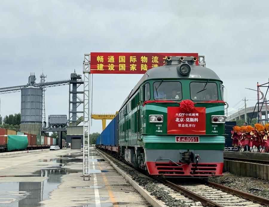 BEIJING, July 2 (Xinhua) -- A cargo train left Beijing for the Russian capital Moscow on Monday, marking the launch of a regular China-Europe freight-train service from the Chinese capital.