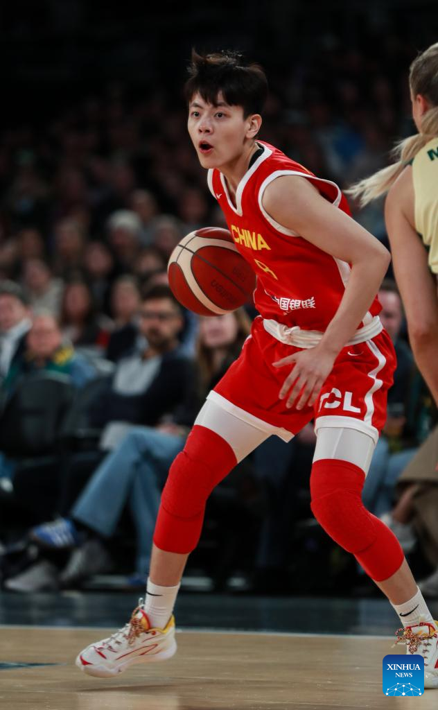Yang Shuyu of China competes during the women's basketball match of the Ford Ballin' 24 between China and Australia in Melbourne, Australia, July 3, 2024. (Xinhua/Ma Ping)