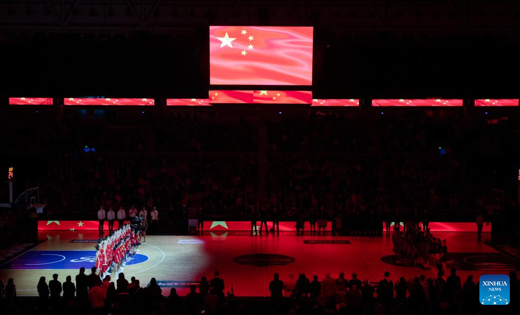 Team China line up during the national anthem ceremony prior to the women's basketball match of the Ford Ballin' 24 between China and Australia in Melbourne, Australia, July 3, 2024. (Xinhua/Ma Ping)