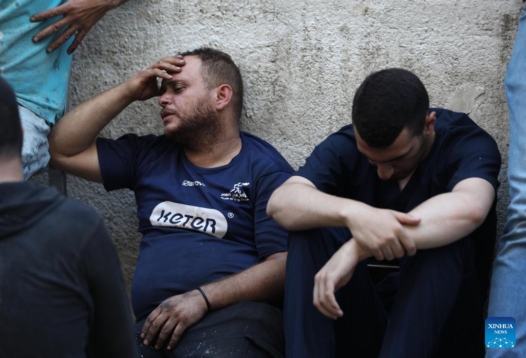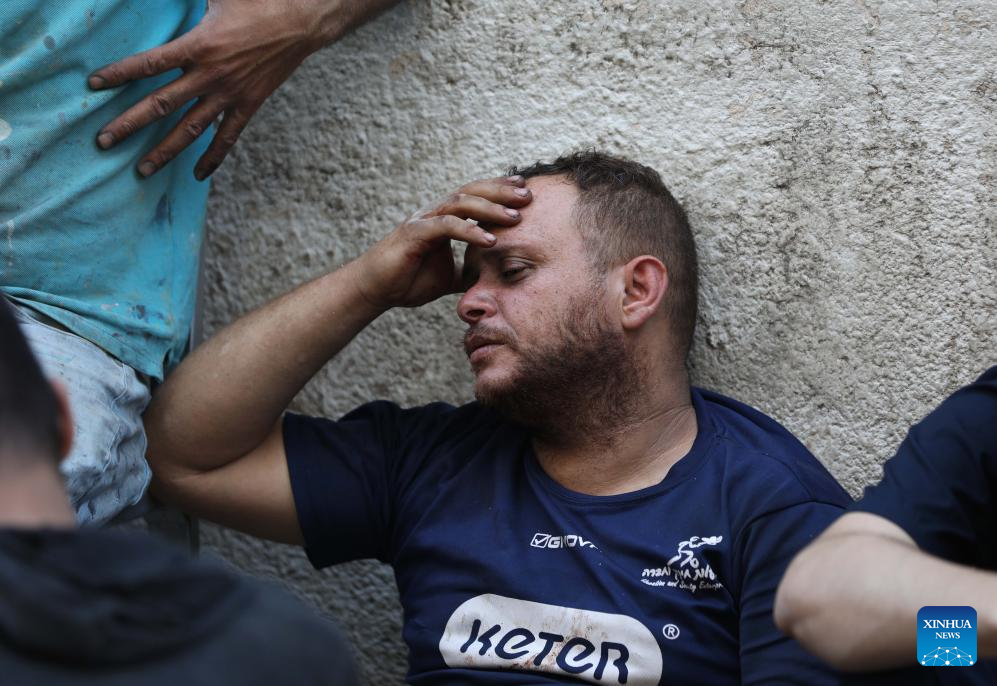A Palestinian man mourns Nidal Ziad Al-Amer during his funeral after he was killed by Israeli forces in the West Bank city of Jenin, on July 3, 2024. The young Palestinian man in the northern West Bank city of Jenin was killed by Israeli forces on Wednesday, the Palestinian health authorities said. (Photo by Ayman Nobani/Xinhua)