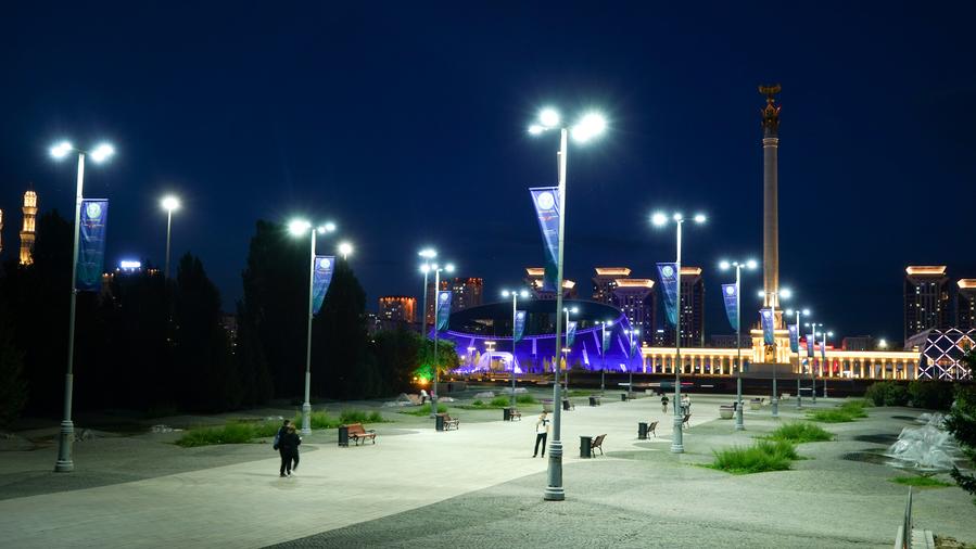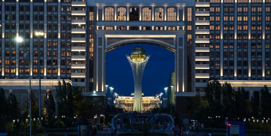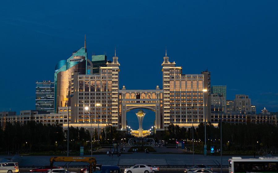 This photo taken on July 2, 2024 shows the Ak Orda Presidential Palace and surrounding buildings in Astana, Kazakhstan. (Xinhua/Wang Jianhua)This photo taken on July 2, 2024 shows the Ak Orda Presidential Palace and surrounding buildings in Astana, Kazakhstan. (Xinhua/Wang Jianhua)This photo taken on July 2, 2024 shows the Palace of Peace and Reconciliation in Astana, Kazakhstan. (Xinhua/Wang Jianhua)This photo taken on July 2, 2024 shows a monument (R, in the background) at the Independence Square of Astana, Kazakhstan. (Xinhua/Wang Jianhua)This photo taken on July 1, 2024 shows the Khan Shatyr shopping mall in Astana, Kazakhstan. (Xinhua/Wang Jianhua)This photo taken on July 1, 2024 shows the Baiterek Tower as seen through a building in Astana, Kazakhstan. (Xinhua/Wang Jianhua)This photo taken on July 1, 2024 shows a night view of Astana, Kazakhstan. (Xinhua/Bai Xueqi)