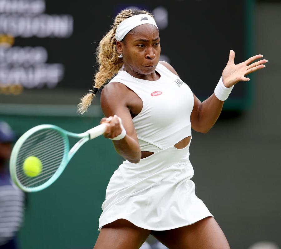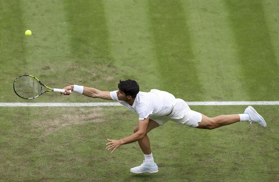 LONDON, July 3 (Xinhua) -- Defending champion Carlos Alcaraz breezed past Aleksander Vukic in straight sets to reach the men's singles third round at the Wimbledon Championships here on Wednesday.