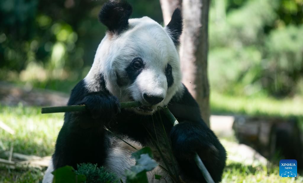 Giant panda Xin Xin eats bamboo at the Chapultepec Zoo in Mexico City, Mexico, July 4, 2024. (Xinhua/Li Mengxin)