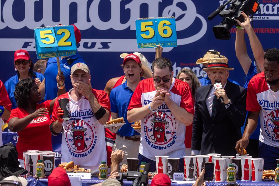 NEW YORK, July 4 (Xinhua) -- The annual hot dog eating contest on Coney Island of New York City, U.S. state of New York, concluded on Thursday with a brand-new champion in the men's contest but less impressive results.