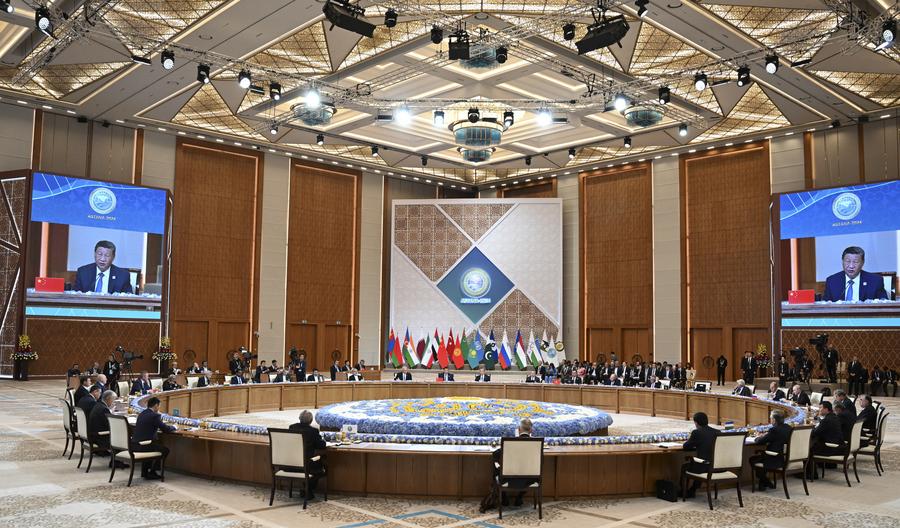 Chinese President Xi Jinping attends the 24th Meeting of the Council of Heads of State of the Shanghai Cooperation Organization (SCO) at the Independence Palace in Astana, Kazakhstan, July 4, 2024. (Xinhua/Xie Huanchi)Chinese President Xi Jinping poses for a group photo with leaders attending the 24th Meeting of the Council of Heads of State of the Shanghai Cooperation Organization (SCO) at the Independence Palace in Astana, Kazakhstan, July 4, 2024. (Xinhua/Ju Peng)Chinese President Xi Jinping shakes hands with Kazakh President Kassym-Jomart Tokayev in Astana, Kazakhstan, July 4, 2024. Xi attended the 24th Meeting of the Council of Heads of State of the Shanghai Cooperation Organization (SCO) at the Independence Palace in Astana Thursday. (Xinhua/Pang Xinglei)Chinese President Xi Jinping attends the 24th Meeting of the Council of Heads of State of the Shanghai Cooperation Organization (SCO) at the Independence Palace in Astana, Kazakhstan, July 4, 2024. (Xinhua/Xie Huanchi)■