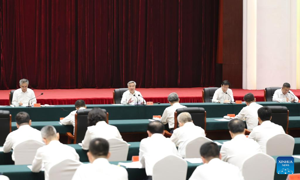Li Xi, a member of the Standing Committee of the Political Bureau of the Communist Party of China (CPC) Central Committee and secretary of the CPC Central Commission for Discipline Inspection, presides over a seminar to hear briefings and suggestions from local discipline inspection and supervision agencies in Taiyuan, north China's Shanxi Province, July 4, 2024. Li made an inspection tour in Shanxi Province from Tuesday to Friday. (Xinhua/Ding Haitao)